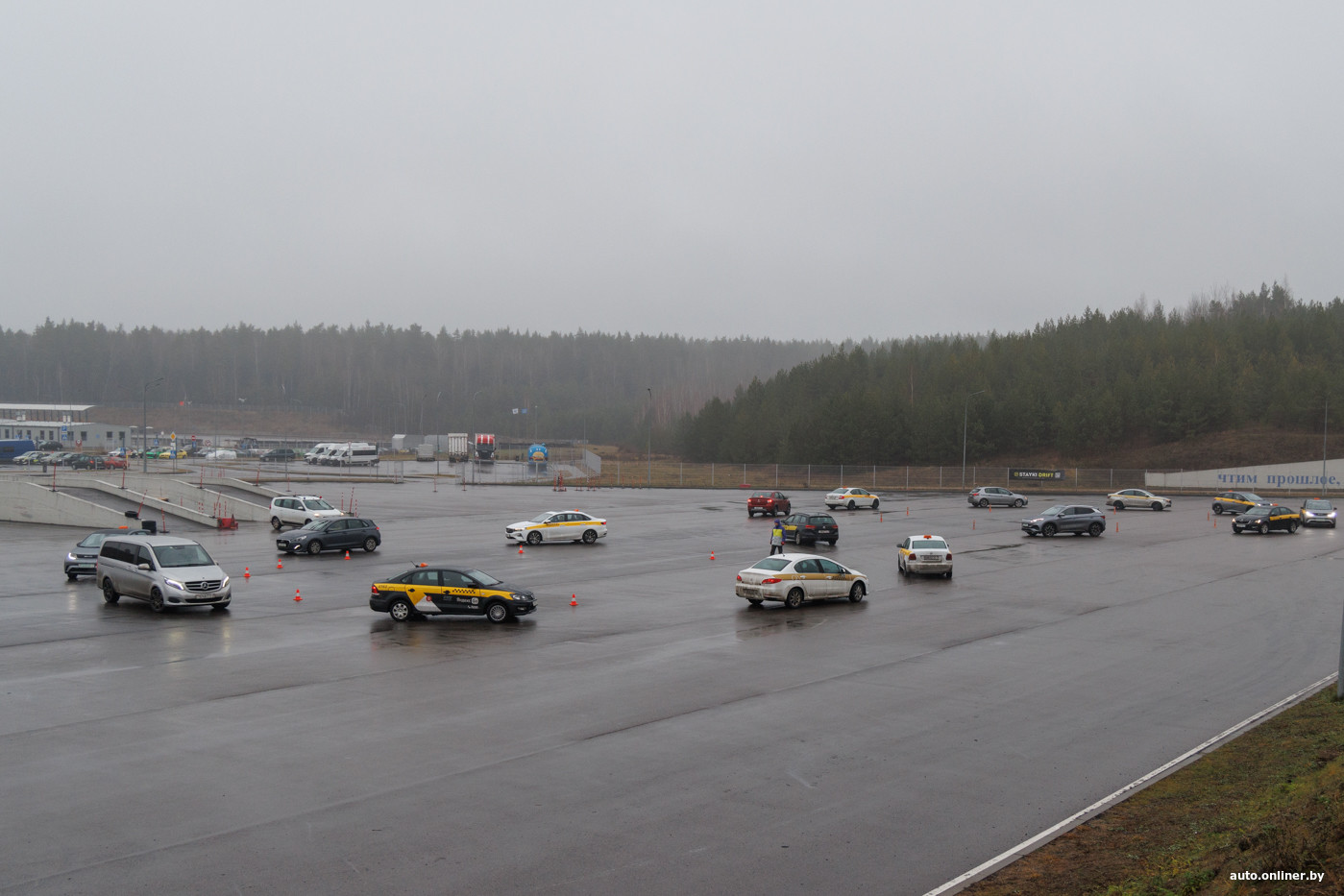 Наконец, самое интересное. Водители вместе со своими машинами (более 25) выстроились на площадке. Для разминки — змейка с постепенным набором скорости. Вот где сразу и пригодится навык эффективного вращения руля: если ехать медленно — справитесь, даже если будете работать рулем как попало, а вот на значительной скорости нужна правильная выучка и сноровка.