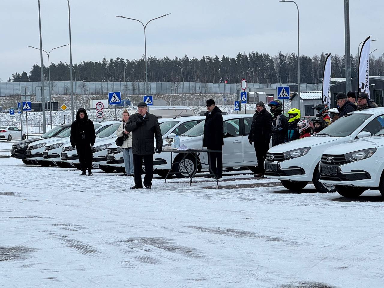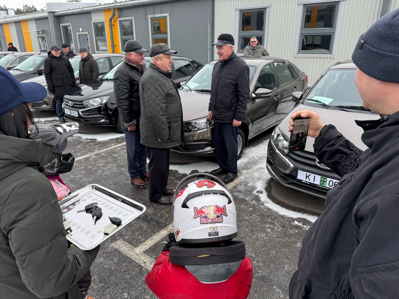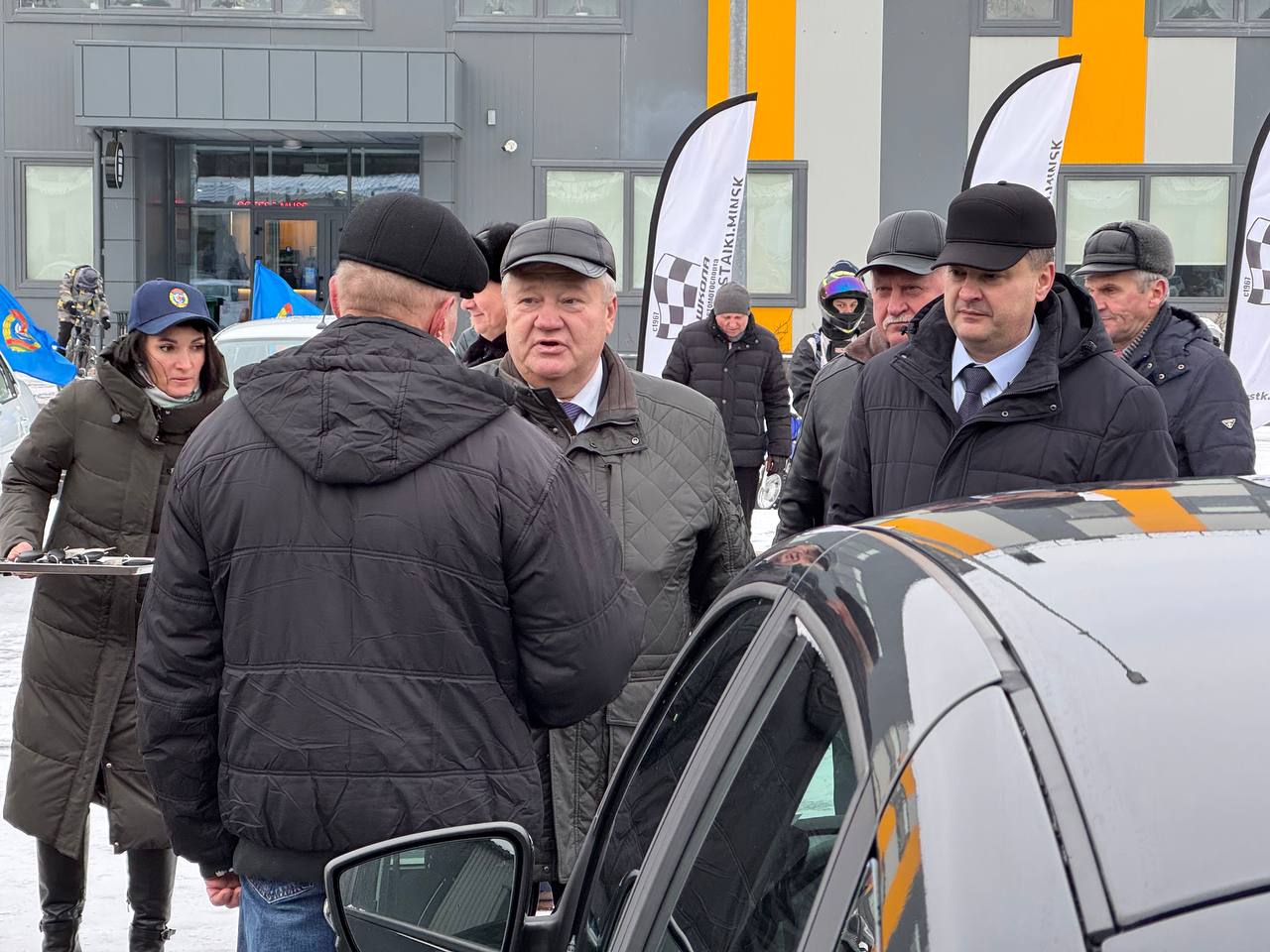 Коллеги с областных структур прибыли на территорию СДЮСТШ по автомотоспорту ДОСААФ для получения своих новых автомобилей. Вручал автомобили непосредственно сам Некрашевич Андрей Константинович!
