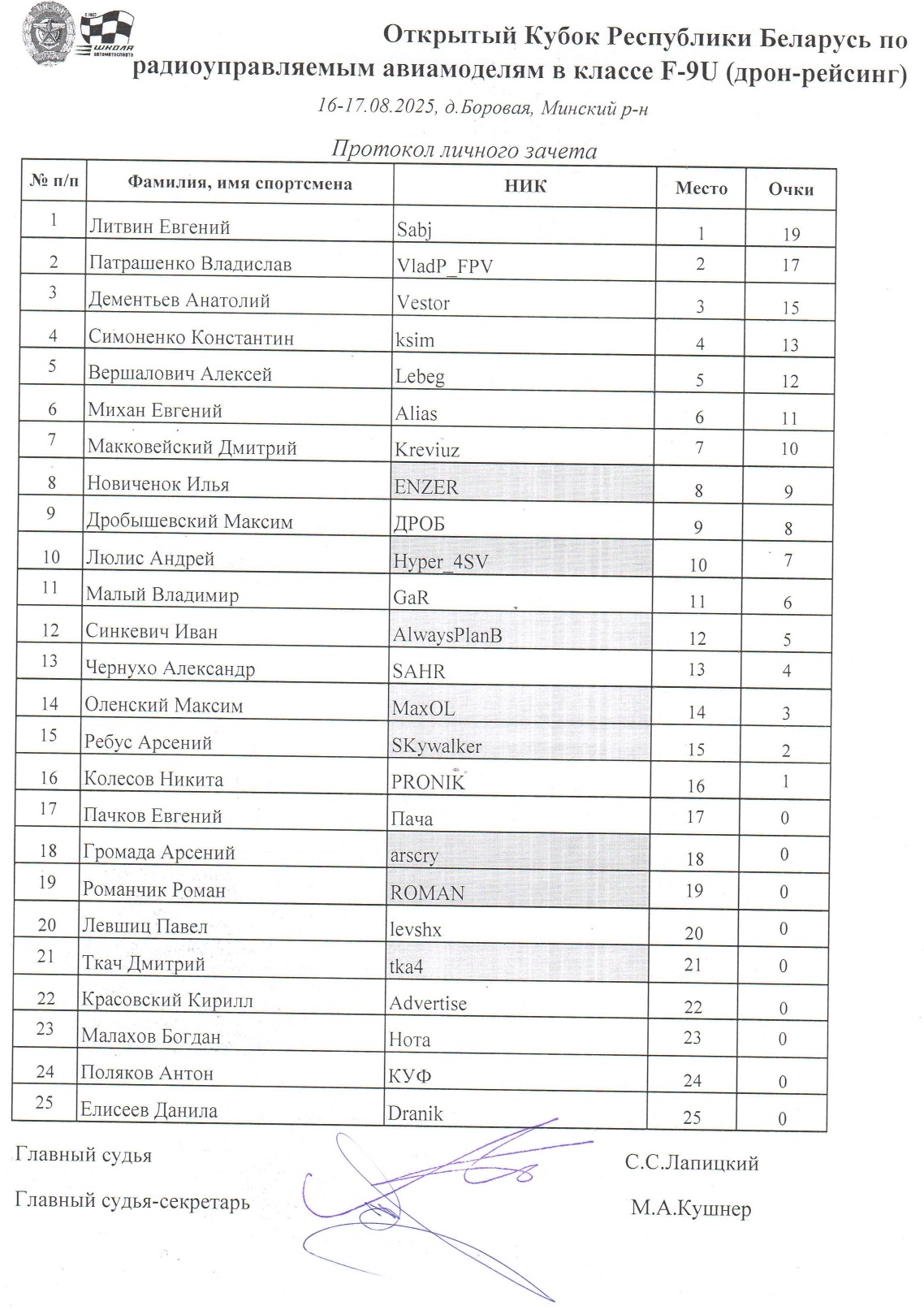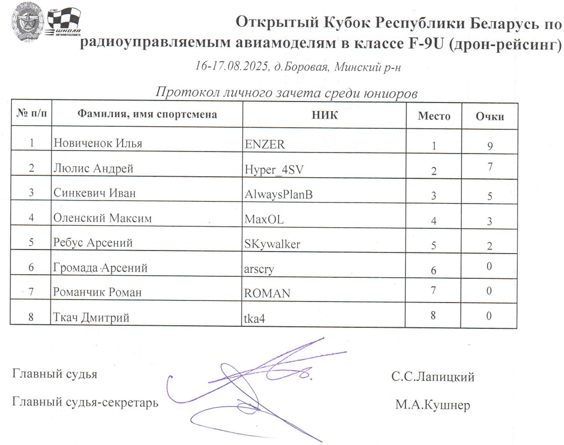 Открытый Кубок Республики Беларусь по радиоуправляемым авиамоделям в классе F9U (дрон-рейсинг): NIGHT BATTLE BELARUS 2025 состоялся 16-17 августа 2025 года по адресу: Минская обл., Минский р-н, аэродром Боровая.