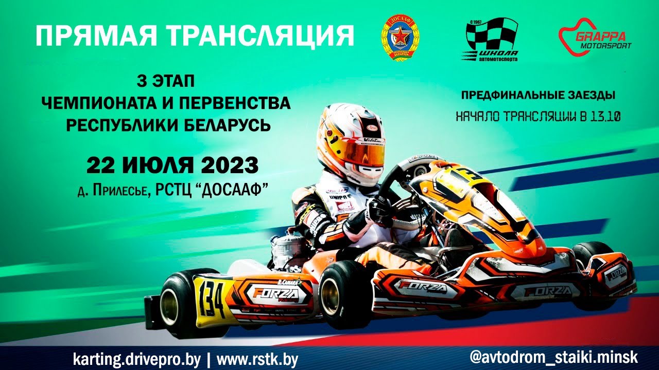 3-4 этапы Чемпионата и Первенства Республики Беларусь по картингу и 3–4 этапы открытых республиканских соревнований «Серия ДОСААФ» по картингу прошли 21–23 июля 2023 года на картодроме в РСТЦ ДОСААФ (район дер. Прилесье).
